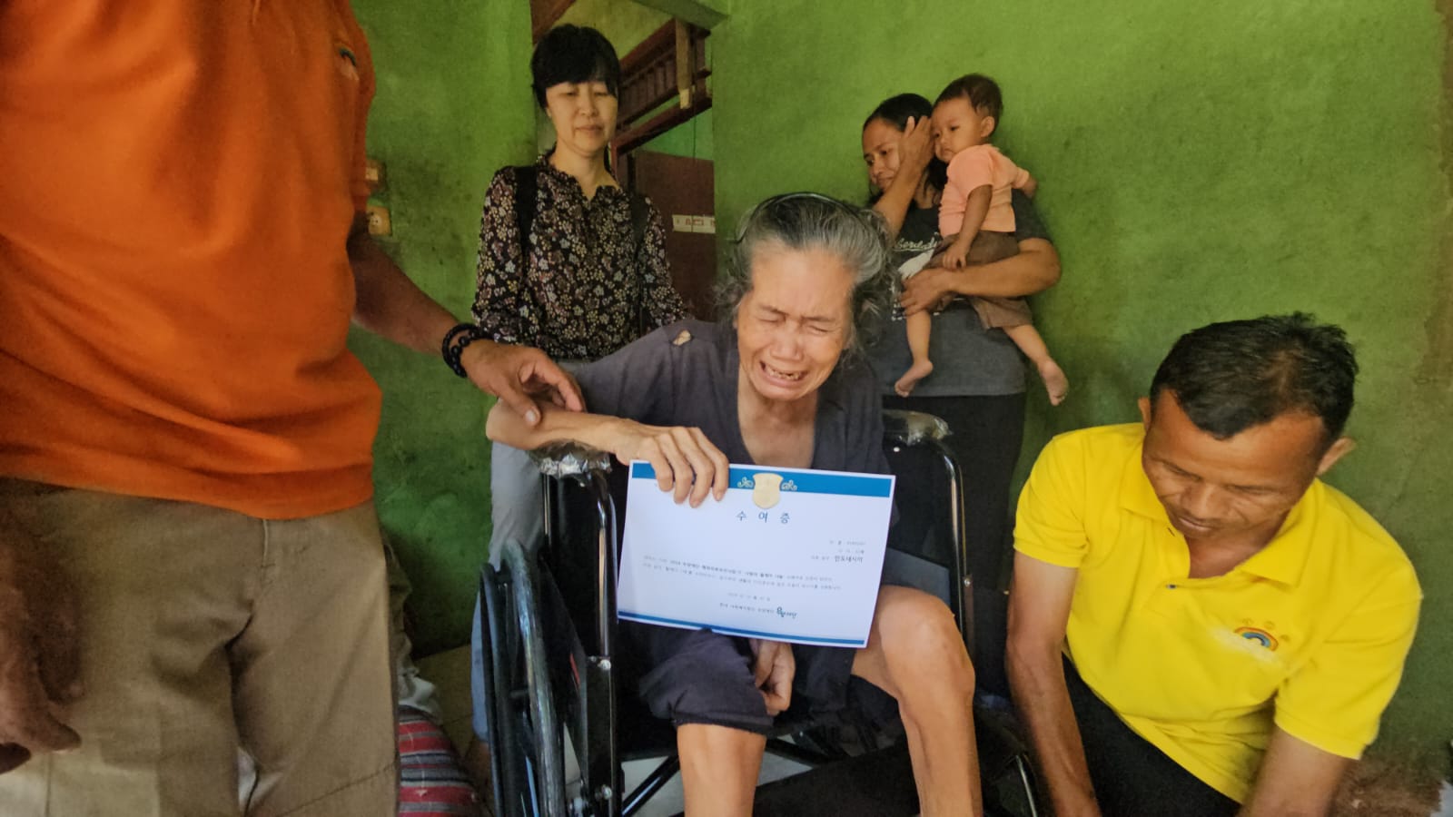 Ucapan terimakasih dengan rasa bahagia dan haru dr para penerima sembako dan kedua penerima bantuan kursi roda membuat mereka bersemangat untuk segera sehat kembali.